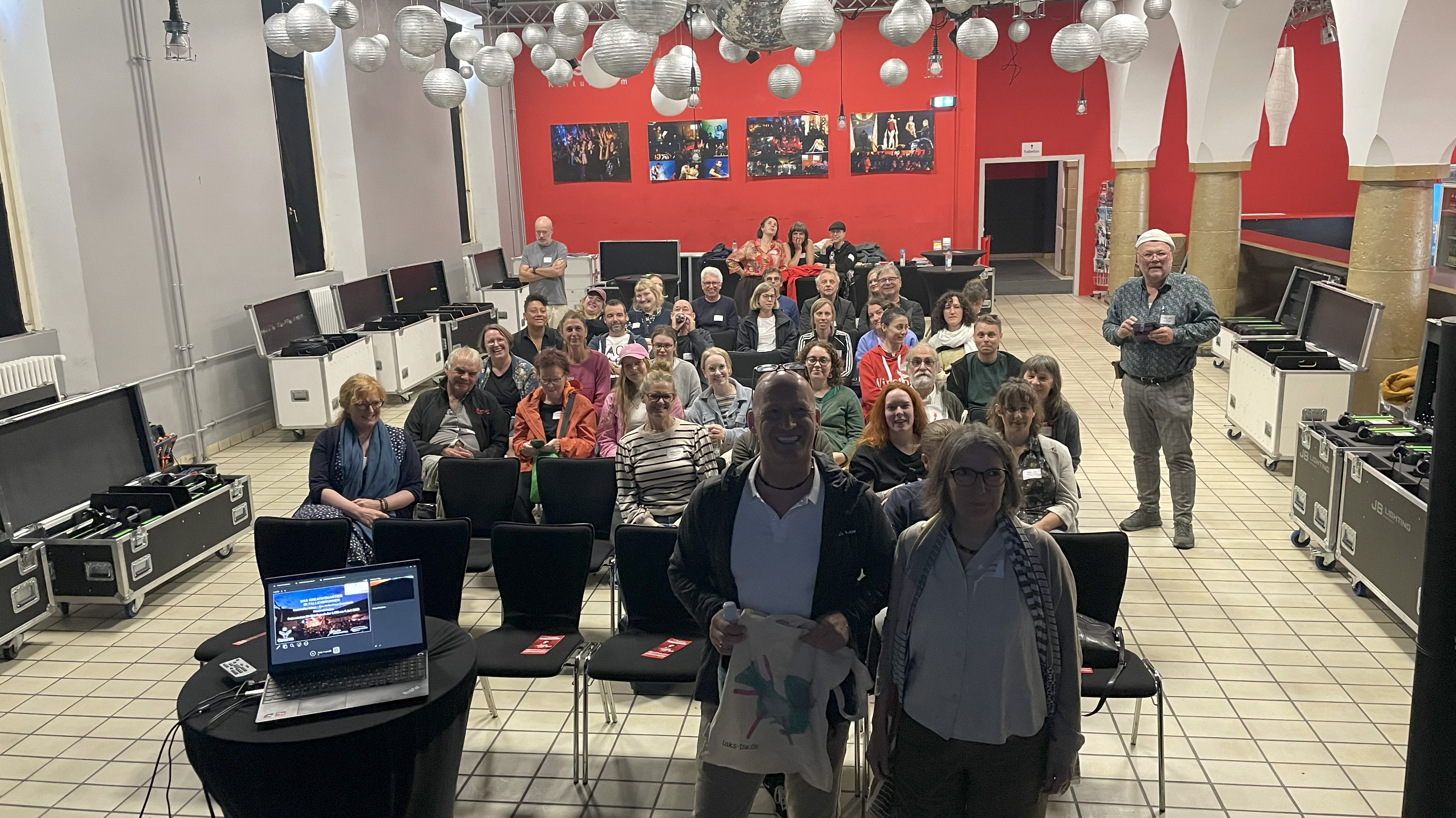 Die Reise begann am 8. Juli im Kulturzentrum Dieselstrasse in Esslingen. Geschäftsführerin Maren Weber und die Vorstände Wolfgang Hinz-Rommel und Alexander Engelmann präsentierten die Programmarbeit ihres Hauses und sprachen offen über die Herausforderungen ehrenamtlicher Kulturarbeit. Der Geschäftsführer der LAKS, Siegfried Dittler, begrüßte die Mitreisenden – darunter auch Vertreterinnen des Ministeriums für Wissenschaft, Forschung und Kunst.